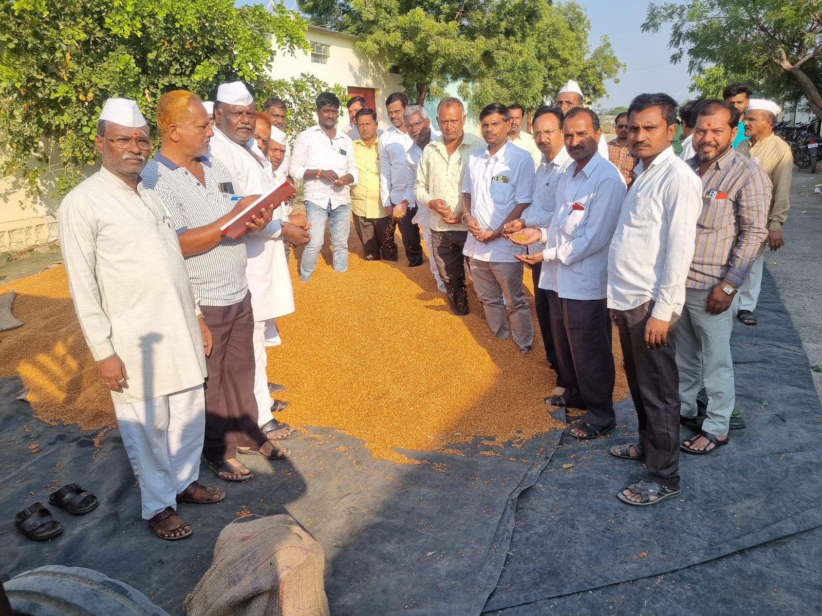 A large amount of agricultural produce like tur, mung, urad, gram, jowar, wheat, bajra, jod, maize, etc. arrives at the Shri Shantalingeshwar market premises of the Dudhani Agricultural Product Market Committee. After the agricultural produce of the farmers arrives, it is auctioned in front of the farmers, divided, and the amount is paid to the farmers on the same day.